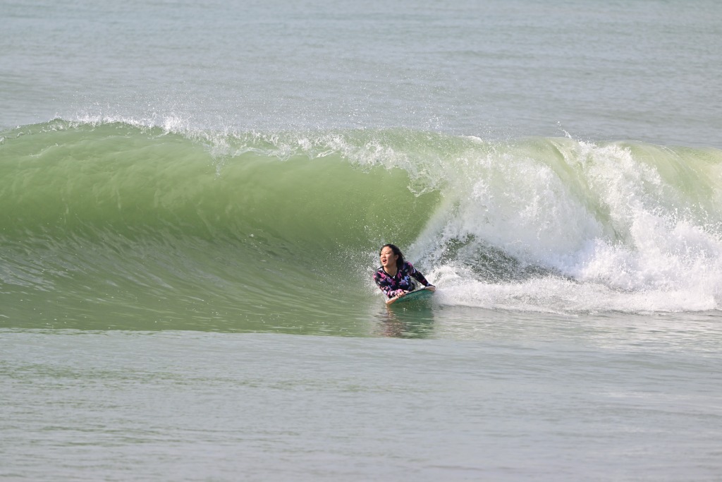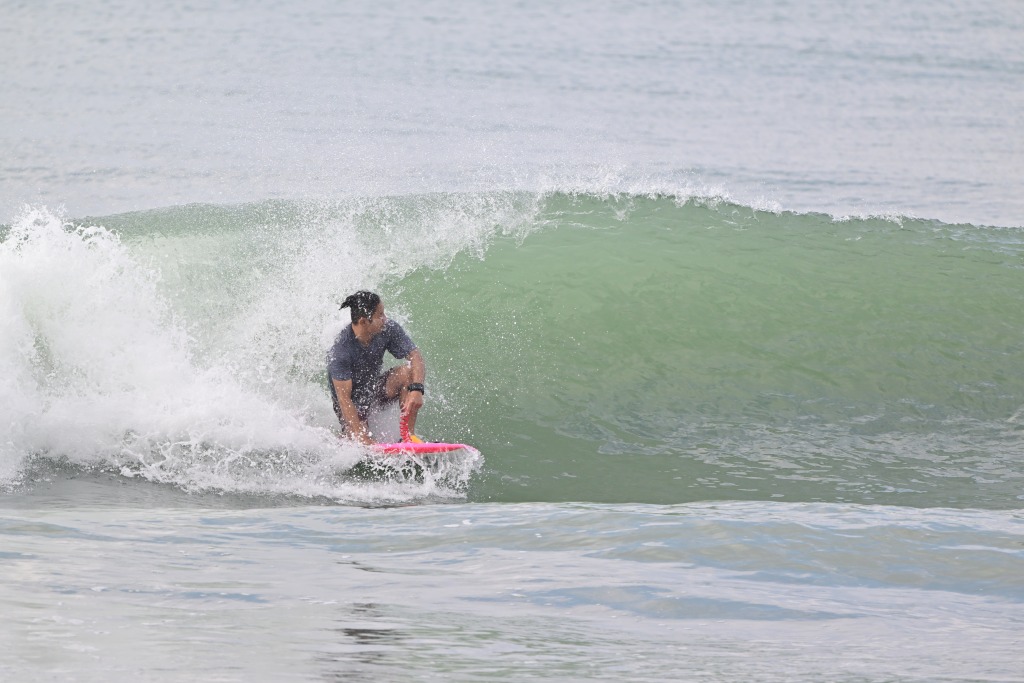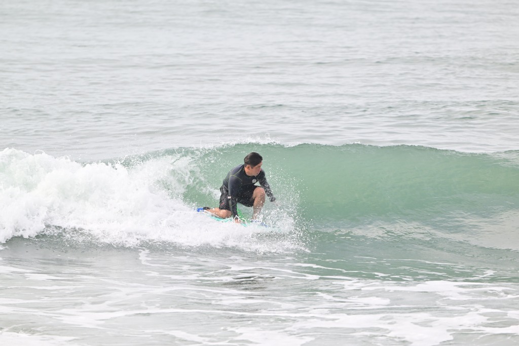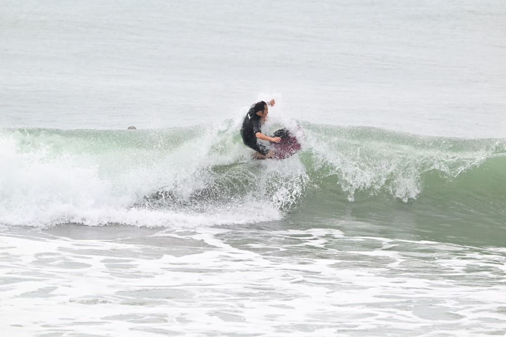 大きな波の日はニーボードもやる。