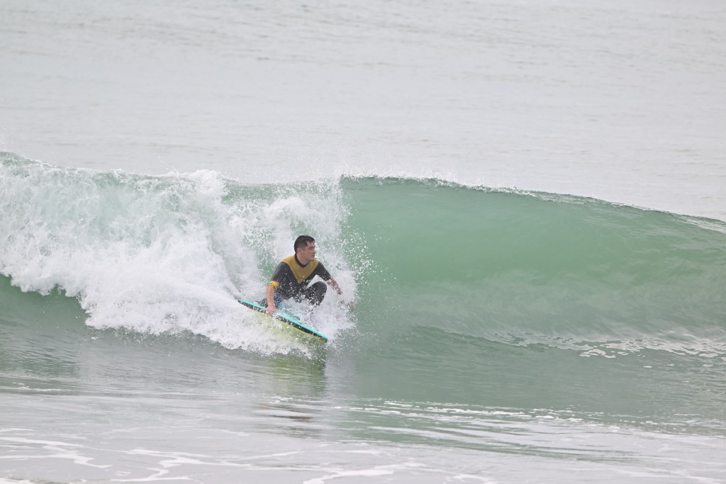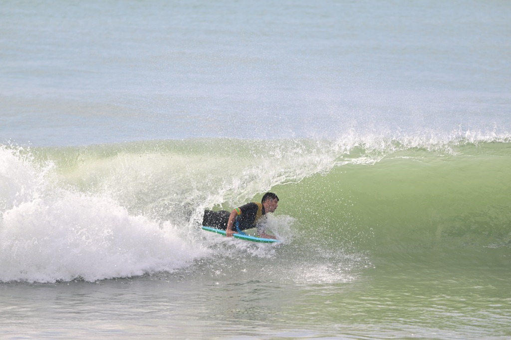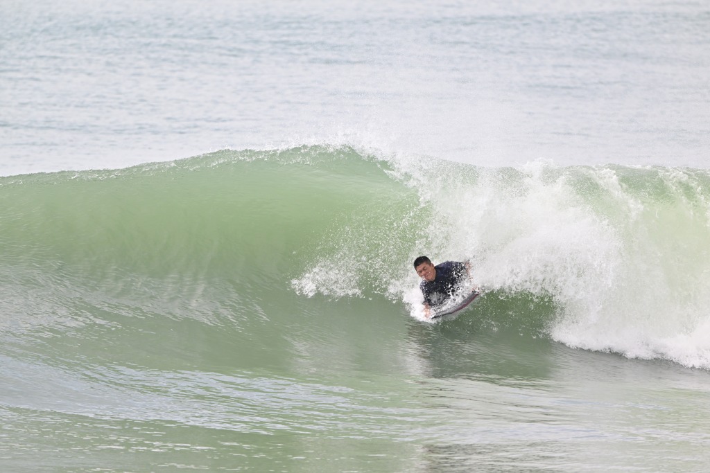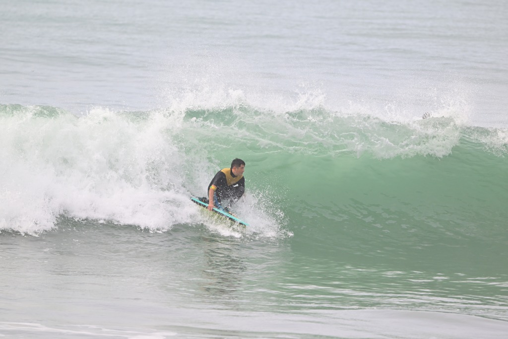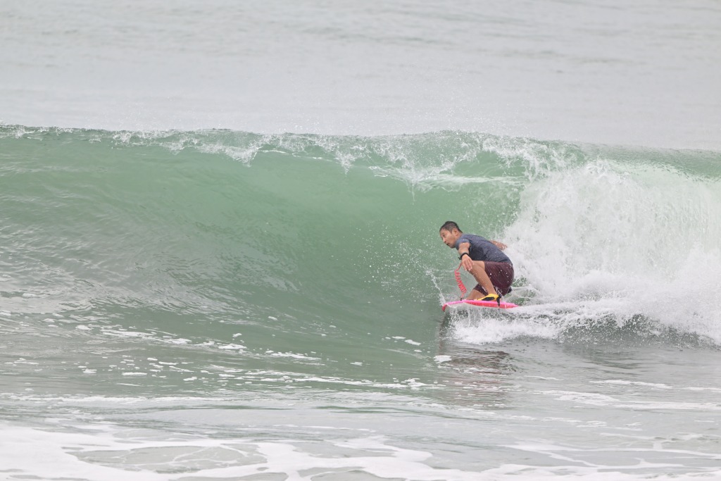 大きな波の日はニーボードもやる。